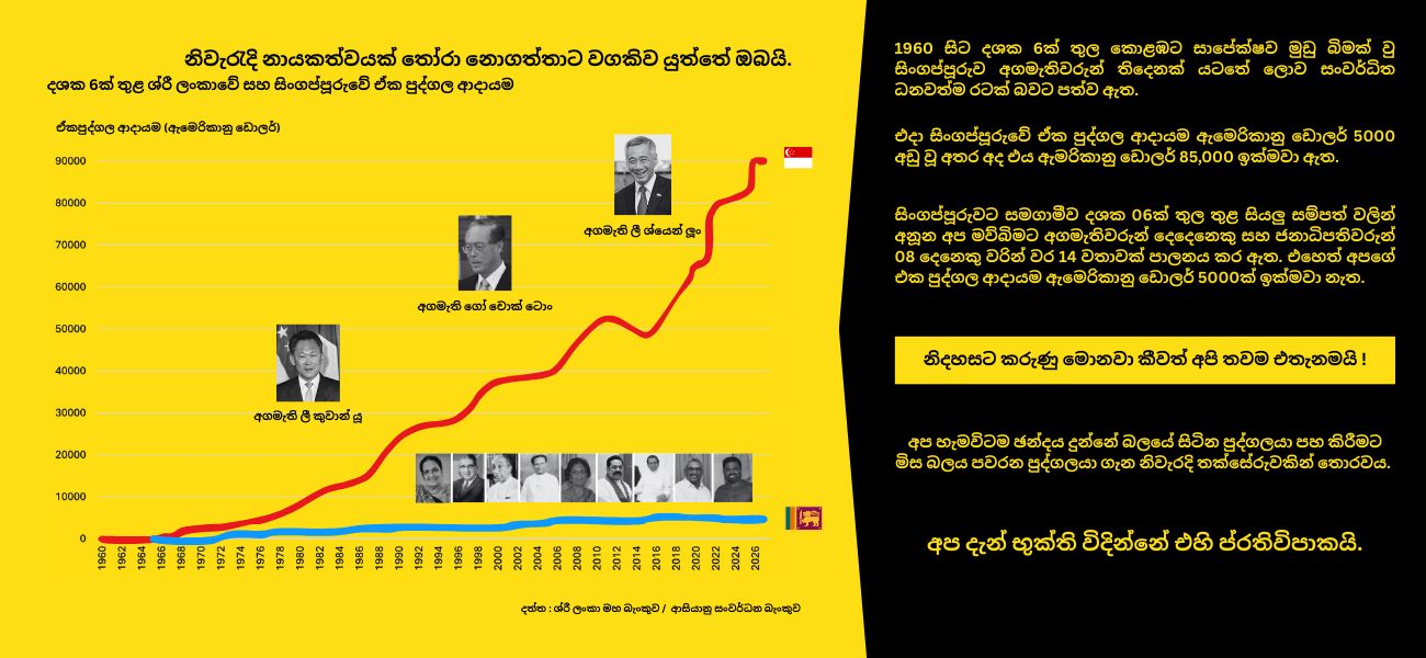 Our party firmly believes that a person who protects his self-respect and provides a high-quality service with dignity and dignity without corruption should receive the highest salaries and privileges suitable for that profession. Executive positions in the private sector are paid the highest salaries for achieving set targets. In this situation, the highest quality professionals work in the private sector, while the lower quality professionals who have not been successful in the private sector are oriented towards political work as a career. Therefore, from a cabinet minister to a local council member with privileges, the maximum is Sri Lanka Rs. 25 lakhs and a minimum salary of Rs.1 lakh should be given in our party’s opinion.
